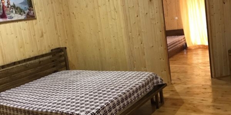 Мебель: 2 односпальные кровати, двухспальная кровать, кресла, шкаф, прикроватные тумбочки, стол, прихожая, вешалка, зеркало, обеденная зона.